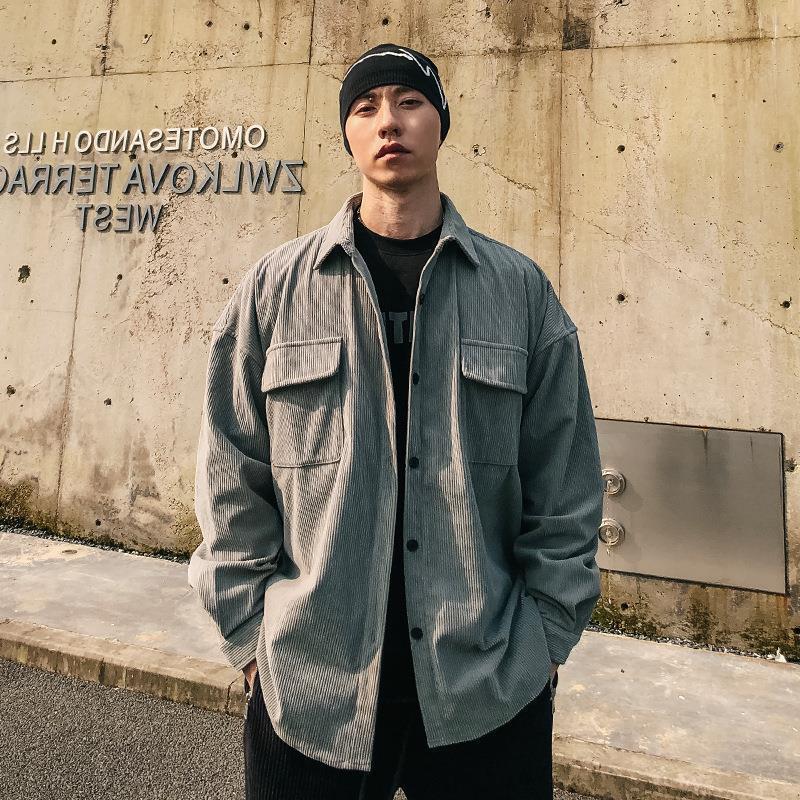 Camisa de pana americana para hombre ajustada suelta en estilo retro