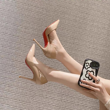 Tacones altos rojos nudos con hermoso fondo vacío rojo