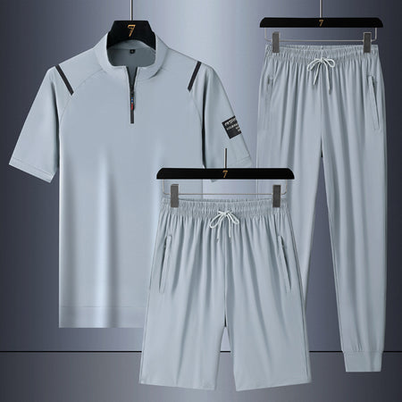 Traje de hombre de seda fría de tres piezas y secado rápido