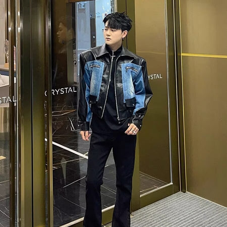 Abrigo de cuero PU calidad y abrigo de mezclilla cruzada de alta calidad