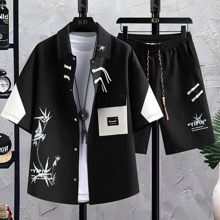 Conjunto deportivo masculino verano: Camisa de manga corta y pantalones cortos estilo chino para el verano