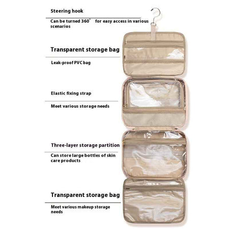Bolsa de aseo portátil de viaje colgante con gancho de almacenamiento