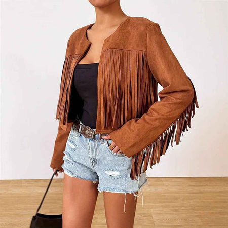 Chaqueta retro con flecos mujer ideal para vacaciones casuales